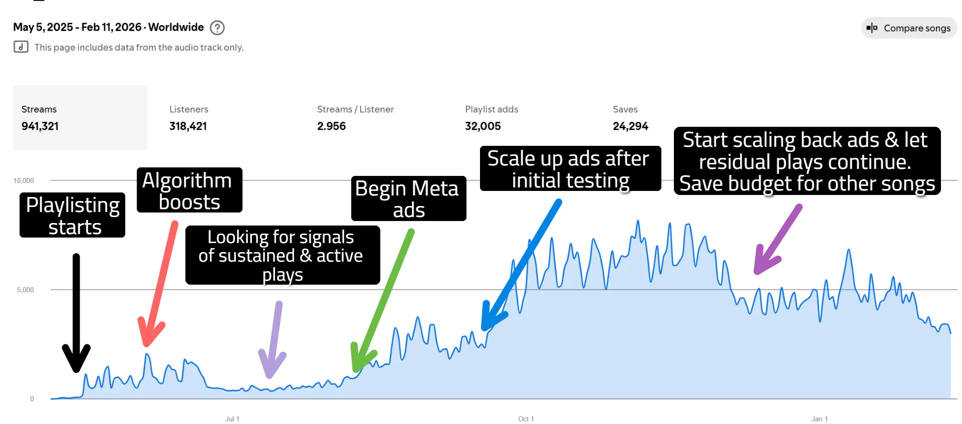 Ultimately, it will come down to if people like your music or content. We have thousands of music ads on social media and always do our best to provide the highest level of copywriting and visuals, but the song must play its part in the process.